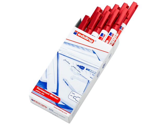 Edding® 400 permanent merkepenn er utformet med en fin kulespiss som passer til forskjellige oppgaver og kan brukes på nesten alle overflater. Denne permanente merkepennen benytter hurtigtørkende blekk og er vann- og flekkbestandig, slik at du kan skrive tydelige og plettfrie linjer. Den er spesialutformet som en allsidig merkepenn og nyttig til en lang rekke oppgaver. Edding 400 permanent merkepenn har en fin kulespiss med en strekbredde på 1 mm og passer utmerket til oppgaver som krever større presisjon og nøyaktighet. Den skriver jevnt på nesten alle overflater, som plast, metall, glass og treverk. Merkepennen har en slank og lett utførelse som gjør den ekstremt behagelig og enkel å bruke. Den leveres med hette og lommeklips, slik at det er lett å ta den med seg på farten. Videre kan den etterfylles og er dermed et økologisk alternativ.