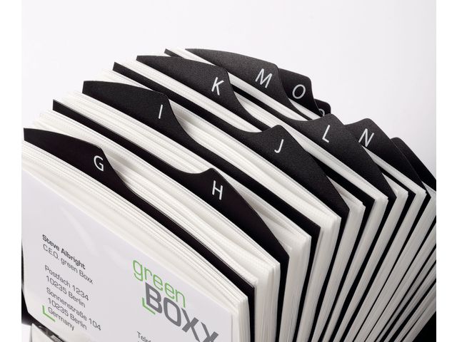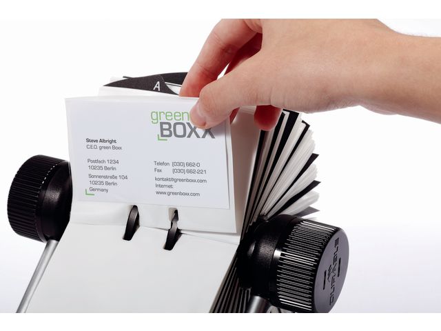 - Rullekartotekløsning med 200 avtakbare plastlommer og 25 flyttbare registerfaner A-Å.