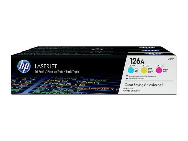 Denne lønnsomme pakken med HP 126A-fargetonerkassetter gir skarpe, profesjonelle og effektive utskriftsresultater med pålitelig ytelse. Fordi den er laget for å gi definert grafikk og tydelig tekst, kan denne tonerkassetten gar... Läs mer
