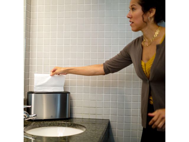 - Øk hygienenivået ved å bruke tørkepapiret i berøringsfrie Tork H2-dispensere fra Elevation- eller Image Design-serien som gir ut ett tørkepapir om gangen.