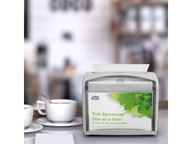 Kontroller kostnadene knyttet til serviettforbruk, og forbedre hygienenivået med Tork Xpressnap serviettdispenser. Du kan også ta med din egen logo eller reklame ved hjelp av Ad-a-Glance-funksjonen fra Tork. Denne bærbare Tork Xpressnap serviettdispenseren sikrer mindre serviettavfall og gir bedre hygiene. Bare én serviett slippes av gangen, noe som gir lavest mulige kostnader. Torks Ad-a-Glance-funksjon gir deg muligheten til å reklamere eller informere kunden ved hjelp av ferdige maler eller egen design. Dispenseren er laget av plast, og den bærbare størrelsen gjør at den kan brukes i hektiske miljøer som kafeer, hurtigmatrestauranter og take-away-bedrifter.