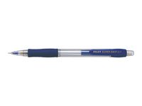 Trykkblyant med gummigrep for behagelig skrivefølelse. Delvis transparent pennekropp. Fullt skyvbart føringsrør. Pilot Super Grip trykkblyant har en lett og fargerik design som tar seg godt ut hvor som helst på kontoret, hjemme eller i klasserommet. Spissen på 0,7 mm gir brede strøk som er skarpe og fremtredende. Spissen kan trekkes helt inn, slik at du enkelt kan ha den i lommen. Denne trykkblyanten har en gjennomsiktig tønne, slik at du kan se når blyet er i ferd med å ta slutt. I tillegg leveres den med et innebygd viskelær og en lommeklips som gjør den enda mer praktisk. Blyet og viskelæret til trykkblyanten kan etterfylles, slik at det blir mindre avfall og mer besparelse.