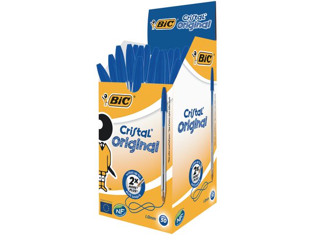 BIC® Cristal® kulepennen med 1,0mm medium spiss skriver med jevnt, flytende blekk. Boks med 50stk. Denne kulepenn passer til hverdagsbruk i hjemmet, på kontoret eller i klasserommet og den karakteristiske formen er stilig i alle omgivelser. Pennen har en middels tykk spiss som gjør det mulig å skrive i forskjellige stiler. Pennen leveres med lommeklips og hette, slik at den lett kan bæres i lomma. Kroppen er gjennomsiktig, slik at du kan se blekknivået og passe på at du ikke går tom.