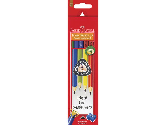 Blyanten Junior Triangular Graphite fra Faber-Castell er spesiallaget for barn som lærer seg å skrive. Blyanten Faber-Castell Junior Triangular Graphite er designet for nybegynnere i skriving. Den har en større kropp, som gjør det lett for små hender å holde den, og en ergonomisk trekantform, som gjør at barn kan skrive uten anstrengelser. Denne sorte blyanten er av høy kvalitet og har hardhetsgrad HB, og den kommer i en pakke med 12 assorterte farger på kroppene, pluss en praktisk blyantspisser. Trematerialet som brukes for denne barneblyanten kommer dessuten fra bærekraftige kilder, som gjør den til et flott valg for den miljøbevisste.