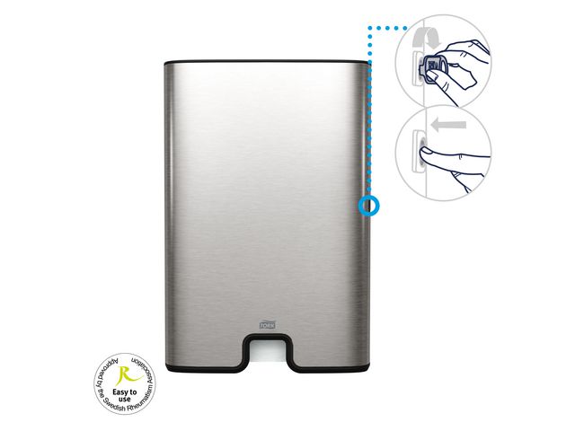 Spar plass samtidig som du fremmer følelsen av eleganse. Denne dispenseren har rette linjer, glatte overflater og beskyttelse mot fingeravtrykk, noe som gjør at denne ser bra ut til enhver tid. Ved fylle dispenseren med et premium tørkepapir vil man kunne tilby gjestene en god opplevelse. Med dispensering av et og et ark av gangen kan man redusere forbruket og sikre optimal hygiene. Enkel å fylle på, og det praktiske inspeksjonsvinduet sørger for man kan følge med på forbruket.