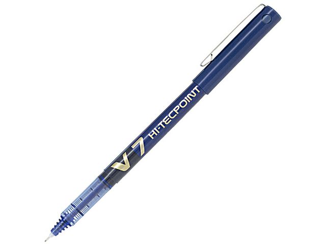 Pilot Hi-Tecpoint V7-pennen er en kulepenn med middels spiss med en blekkregulator som sikrer jevn blekkflyt Denne kulepennen med flytende blekk leveres med en spiss av rustfritt stål som gir jevne og nøyaktige streker uten problemer