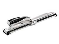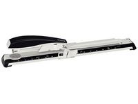 Stor stiftemaskin med ekstra lang rekkevidde. Med god kapasitet, inntil 300mm rekkevidde og enkel innstilling til rett format, gjør den stiftejobben lettere og mer effektiv. Ideel for kontor og skoler. Effektiv stiftemaskin Rekkevidde: Inntil 300mm inn på arket Kapastiet: 40 ark á 80g Enkelt å stille inn Direct Impact teknologi Tollading av stift Kompatibel med stift: 24/6 og 26/6