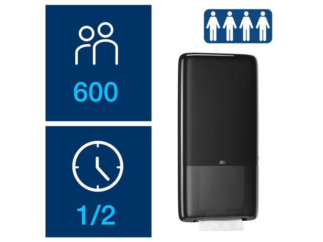 - Med markedsledende kapasitet på over 2050 håndtørk per dispenser, reduseres tiden brukt på etterfylling