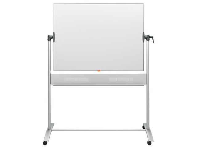 Nobo Classic mobilt whiteboard med emaljert overflate. Den moderne, tynne rammen gir større skriveflate og romslig hylle for penner og tilbehør som ikke tar plass fra skriveflaten. En praktisk løsning hvis veggplass er begrenset. Solide hjul gjør den enkel å flytte på.