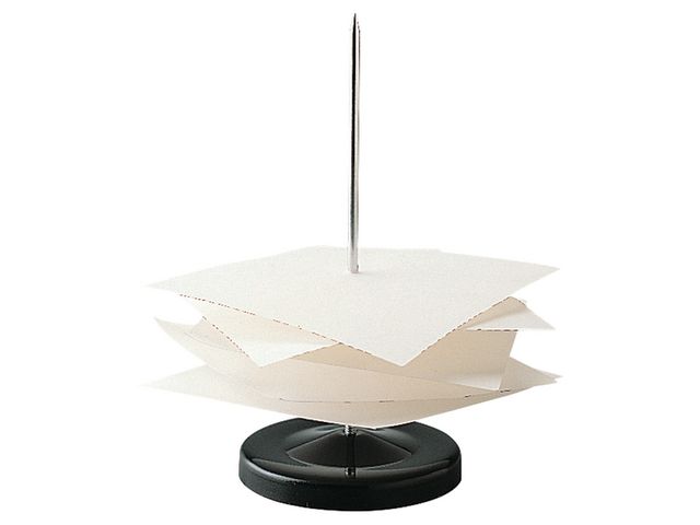Papirspyd av metall med sortlakkert fot. Metallspyd til papir Fotdiameter: 8,5 cm Høyde: 13,5 cm Materiale: Plast, metall.