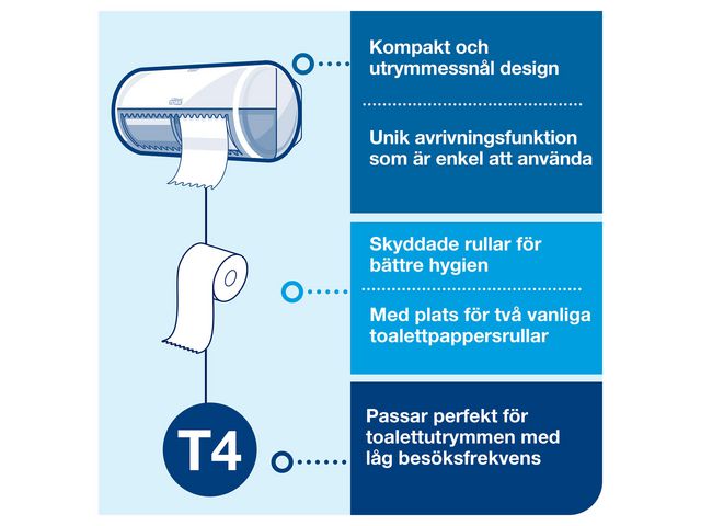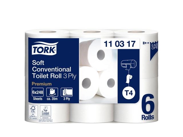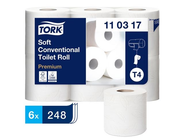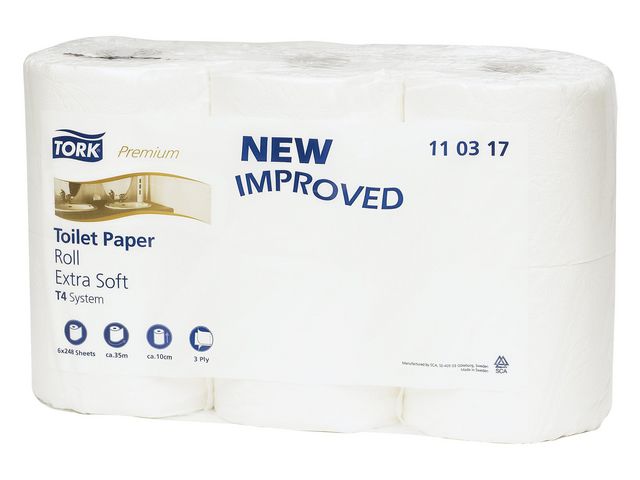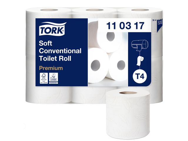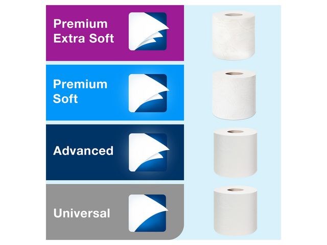 Tork Advanced Extra Soft T4 Standard toalettpapirrull er myk og gir skånsom pleie og maksimal komfort. Tork Advanced Extra Soft T4. føles mykt og er laget for å gi skånsom pleie og enestående komfort. Det er laget med 3-lags ark for enestående absorberingsevne og overlegen komfort.