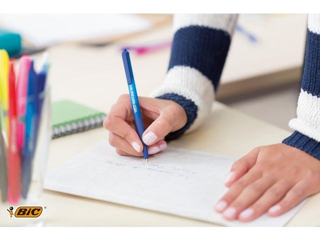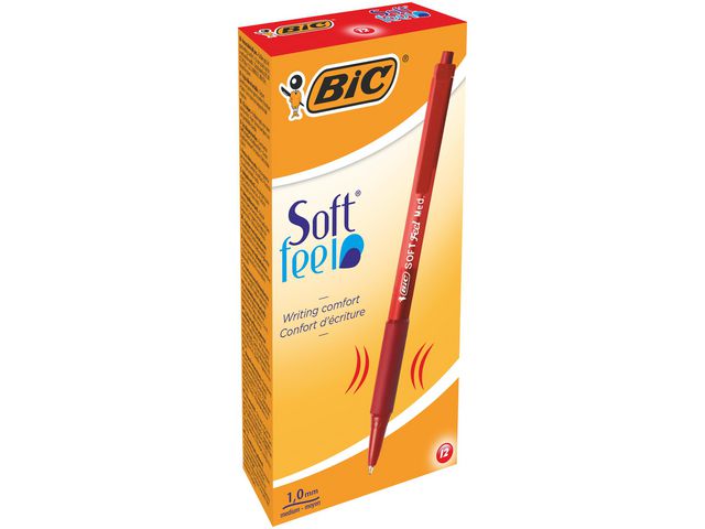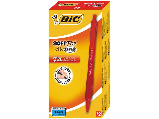 BIC® SoftFeel® Clic Grip med medium spiss, har et komfortabelt, polstret grep som gir en jevn skriveopplevelse. Boks med 12stk. Det komfortable polstrede gummigrepet gir deg en stø hånd å skrive med, mens det skrivevennlige blekksystemet sikrer en ren og jevn skriving. Pennens middels tykke spiss gir jevne linjer og sørger for at notatene du tar på skolen eller i møter, fremstår som rene og pene. Lommeklipsen gjør den lett å bære med seg og tilgjenlig til en hver tid.