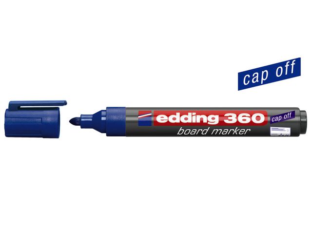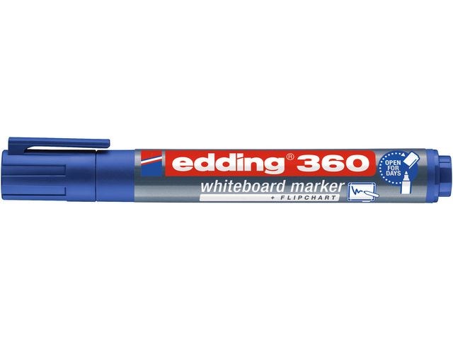 Edding 360-Whiteboardpenn bruker pigmentblekk med svak lukt og skriver jevnt på alle tusjtavler og andre ikke-porøse flater. Whiteboardpennen er spesialformet for å skrive på Whiteboard og så å si alle ikke-porøse overflater, f.eks. emalje, glass og melamin. Det hurtigtørkende og lysfaste blekket kan lett tørkes av uten fuktighet. Whiteboardpennen har et spesielt tørkebestandig blekk som ikke tørker ut selv om hetten er av i flere uker om gangen. Edding Retract 360-Whiteboardpenn har en middels tykk kulespiss med en strekbredde på 1,5-3 mm og passer utmerket til oppgaver som krever større presisjon og nøyaktighet. Whiteboardpennen har en lett utførelse som gjør den svært behagelig og enkel å bruke. Den leveres med hette og lommeklips, slik at det er lett å ta den med seg på farten. Videre kan produktet etterfylles og er dermed et økologisk alternativ.
