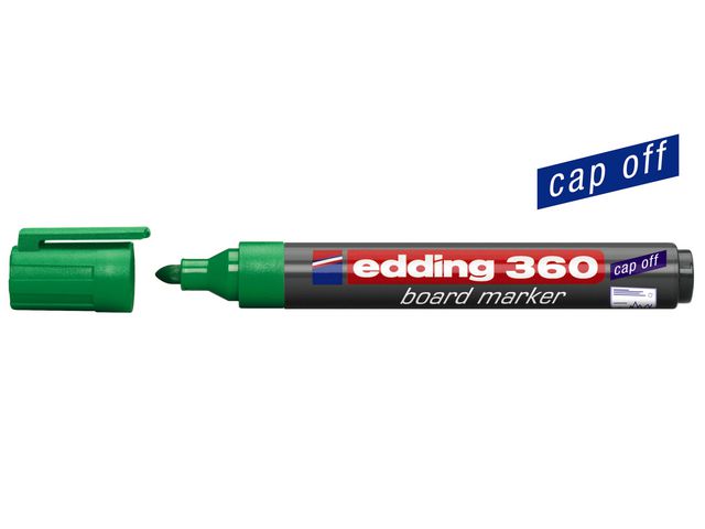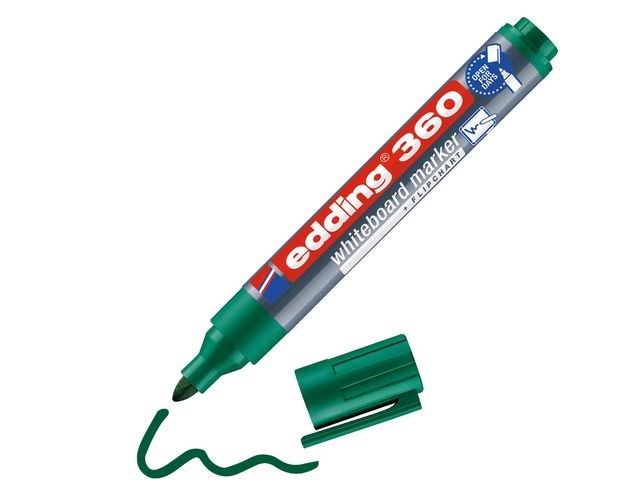 Edding 360-Whiteboardpenn bruker pigmentblekk med svak lukt og skriver jevnt på alle tusjtavler og andre ikke-porøse flater. Whiteboardpennen er spesialformet for å skrive på Whiteboard og så å si alle ikke-porøse overflater, f.eks. emalje, glass og melamin. Det hurtigtørkende og lysfaste blekket kan lett tørkes av uten fuktighet. Whiteboardpennen har et spesielt tørkebestandig blekk som ikke tørker ut selv om hetten er av i flere uker om gangen. Edding Retract 360-Whiteboardpenn har en middels tykk kulespiss med en strekbredde på 1,5-3 mm og passer utmerket til oppgaver som krever større presisjon og nøyaktighet. Whiteboardpennen har en lett utførelse som gjør den svært behagelig og enkel å bruke. Den leveres med hette og lommeklips, slik at det er lett å ta den med seg på farten. Videre kan produktet etterfylles og er dermed et økologisk alternativ.