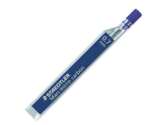 STAEDTLER's Mars® Micro Carbon blypåfyll er et ekstra sterkt bly for trykkblyanter. Dette STAEDTLER-blypåfyllet er svært lett å bruke. Det er bare å åpne trykkblyanten og slippe inn blyet. Blyet lager ikke-permanente streker som det er lett å viske bort fra mange glatte overflater, for eksempel plastikk, metall, lakk og lær. Spissen er ideell for oppgaver som krever brede, markerte streker. Blyet har stor bruddmotstand fordi det er så fleksibelt. Det er laget uten PVC eller mykgjøringsmidler, og er derfor et miljøvennlig alternativ.