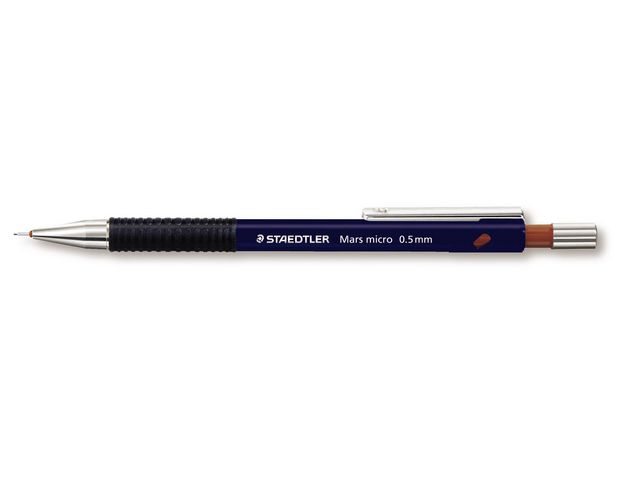 STAEDTLER Mars® Micro 775 trykkblyant har smarte funksjoner som fingergrep av gummi, beskyttende blyhylse og ergonomisk kropp. Denne trykkblyanten har et gummigrep som gir maksimal komfort når du skriver. Denne påfyllbare blyanten har også et PVC- og lateksfritt viskelær.