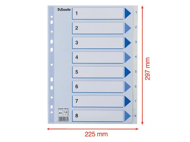 Disse forhåndstrykte skillearkene fra Esselte® er merket med tall, noe som gjør det enkelt å finne spesifikke dokumenter. Systematiser papirer og dokumenter enklere med Esselte® forhåndstrykte skilleark. De er laget av polypropylen og er ideelle for langvarig bruk. De er merket med tall, slik at du enkelt kan organisere papirene dine. Disse skillearkene har universalhull, slik at du kan bruke dem i de fleste permsystemene og enkelt omorganisere dokumentene dine.