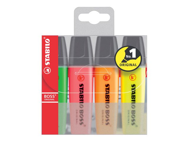 Marker tekst og fremhev viktig informasjon med den klassiske STABILO® BOSS® ORIGINAL-markørpennen som har Anti-Dry-Out-teknologi. Den originale STABILO® BOSS®-markørpennen har et pålitelig, vannbasert blekk med Anti-Dry-Out-teknologi som gjør at hetten kan være av i opptil fire timer uten at blekket tørker ut. Og den er egnet for bruk på nesten alle typer papir. Markørpennen har skråskåret spiss som gir 2 strekbredder på 2 og 5 mm, så den er velegnet for en lang rekke oppgaver som skriving, understreking og markering. STABILO®-markørpenner passer perfekt til studenter og profesjonelle som leser og markerer viktig informasjon i teksten. Markørpennen har den klassiske BOSS®-formen med flat kropp som ikke ruller av gårde. Den bruker også rimelige blekkpåfyllingspatroner som betyr at du kan bruke markørpennen om og om igjen i stedet for å kaste den. Ligger i en plastlomme som kan brukes som et skrivebordssett. Samlingen inneholder et utvalg av fire livlige farger.