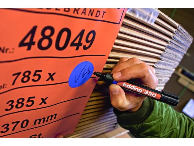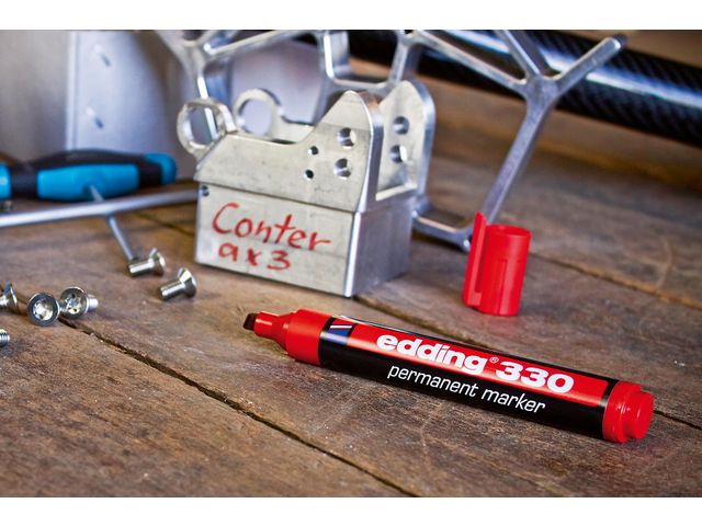 Edding® 330 permanent merkepenn er et solid valg for deg som trenger en pålitelig penn til både detaljerte og generelle merkeoppgaver. Den skrå skåret spissen gir en strekbredde på 1-5mm og den passer utmerket til oppgaver som krever fet og frittflytende skrift. Blekket er permanent, hurtigtørkende og vannbestandig, slik at merkingene holder
