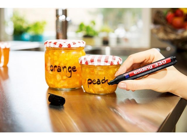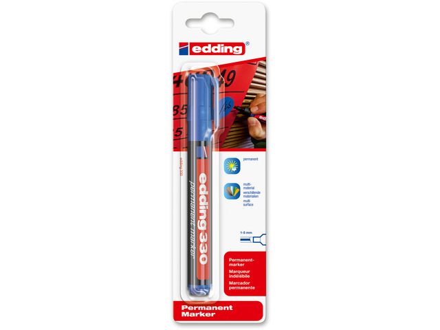 Edding® 330 permanent merkepenn er et solid valg for deg som trenger en pålitelig penn til både detaljerte og generelle merkeoppgaver. Den skrå skåret spissen gir en strekbredde på 1-5mm og den passer utmerket til oppgaver som krever fet og frittflytende skrift. Blekket er permanent, hurtigtørkende og vannbestandig, slik at merkingene holder