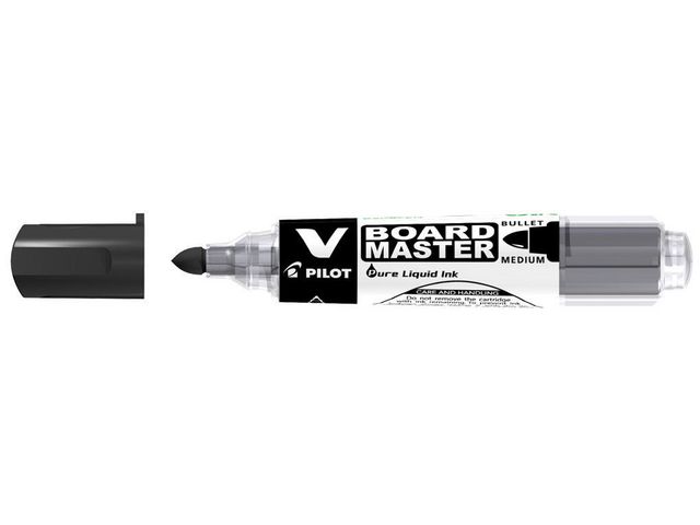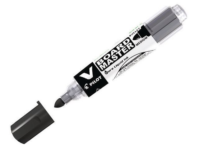 Pilot Begreen V-Board Master påfyllbar whiteboardtusj gir en konstant blekkflyt og bruker lysbestandig flytende blekk i skarpe, levende farger. Whiteboardtusjen bruker et avansert Twin Pipe Feed-system for blekklevering som gjør at du kan skrive umiddelbart uten å riste tusjen.