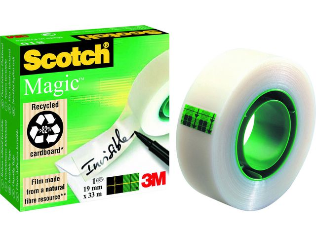 Borddispenser i 100% resirkulert plast. Står stødig på bordet. Tapedispenser inkludert 12 ruller SCOTCH® Magic tape 810 Mål(BxL): 19mm x 33m