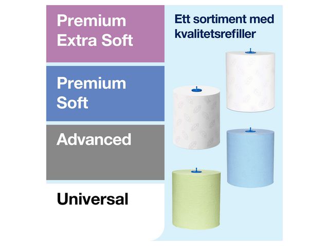 - Hygienisk spak som bare er synlig ved påfylling eller når papiret ikke er tilgjengelig