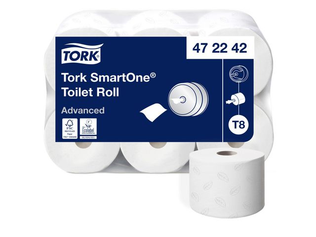 Tork Advanced T8 toalettpapirrull har en myk tekstur som gir huden din skånsom pleie. Tork SmartOne® T8 toalettpapir system er et unikt system som leverer kun ett ark av gangen. Dette bidrar til å redusere forbruket med opptil 40% (I meter) i forhold til ordinære jumbo ruller, noe som gir kapasitet til flere besøk pr rull. Dette toalettpapiret har 2-lags ark for overlegen absorberingsevne og maksimal komfort.
