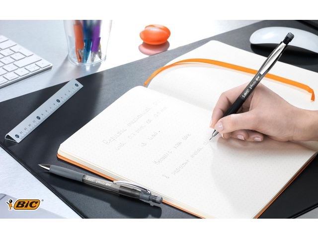 Denne BIC® Velocity Pro-blyanten er en påfyllbar trykkblyant med behagelig polstret grep. BIC® Velocity Pro passer utmerket som hverdagspenn. Det komfortable, dempede gummigrepet gir deg en stø hånd, slik at du kan skrive uten å glippe taket, noe som gir ren og jevn skrift. Pennen gir jevne streker og sørger for at notatene du tar på skolen eller i møter, fremstår som rene og ryddige. Lommeklipsen som er festet til trykkblyanten, gjør det lett å bære den med seg