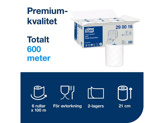 Tork Premium Soft H1 tørkepapirrull til dispenser føles myk og gir skånsom pleie for enestående komfort. Tork Premium Soft H1 tørkepapirrull til dispenser har 2-lags ark. De er absorberende og forbedret med en myk tekstur som gir skånsom pleie og enestående komfort. De egner seg til tørking av hender og er ypperlig for toaletter og kjøkken.