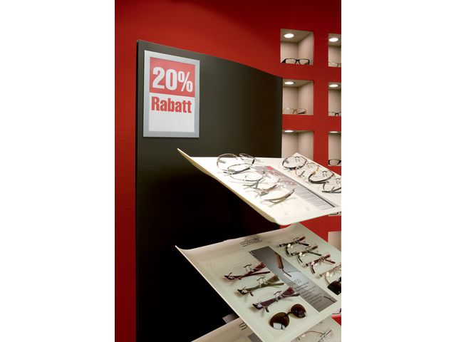 - Informasjonen kan leses fra begge sider når den henges opp på en glassflate
