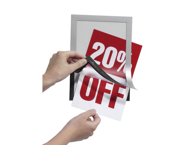 DURAFRAME® selvklebende magnetisk ramme er ideell å bruke for å vise frem beskjeder, skilt, meldinger og plakater. Den magnetiske DURAFRAME® A5-rammen er en enkel og effektiv måte å vise frem skilt, plakater og andre meldinger på. Det er bare å trekke av beskyttelsespapiret og feste den klebrige baksiden til en glatt og fast overflate, for eksempel arkivskap, vinduer, dører eller vegger.