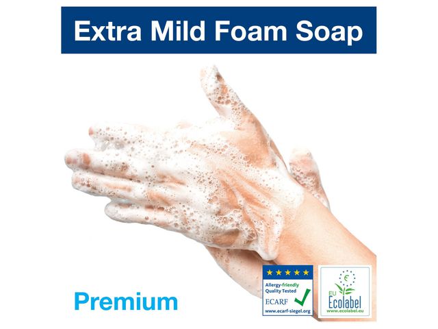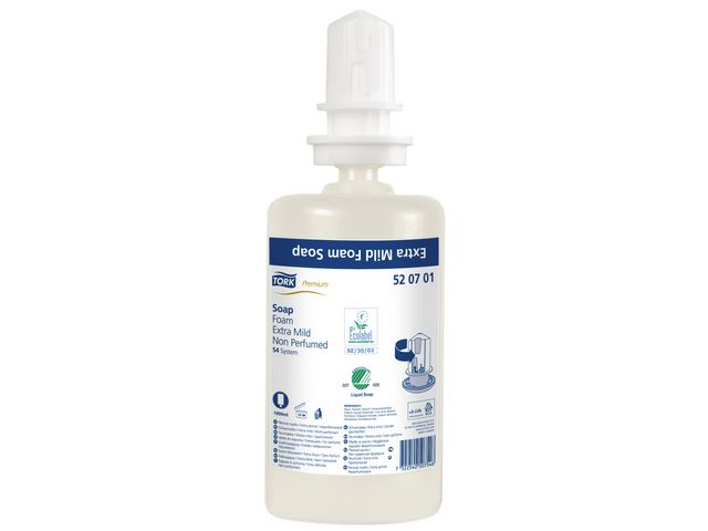 Tork system for skumsåpe gir hurtig skum som er enkel å vaske med og skylle av, og det gjør håndvasken raskere og mer behagelig. Såpen er mild, dermatologisk testet og inneholder pleiende ingredienser som tar hensyn til sensitiv hud også når det er behov for hyppig håndvask.