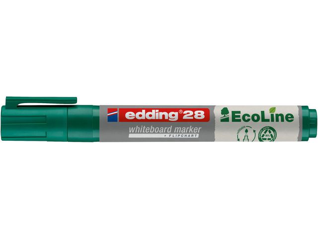 Edding 28 EcoLine-Whiteboardpenn skriver på nesten alle ikke-porøse materialer, og bruker plast laget av 90 % resirkulerte materialer. Whiteboardpennen er spesialformet for å skrive på Whiteboard og så å si alle ikke-porøse overflater, f.eks. emalje, glass og melamin. Det hurtigtørkende og lysfaste blekket kan lett tørkes av uten fuktighet. Whiteboardpennen har et spesielt tørkebestandig blekk som ikke tørker ut selv om hetten er av i flere uker om gangen. Edding 28 EcoLine-Whiteboardpenn har en middels tykk kulespiss med en strekbredde på 1,5-3 mm og passer utmerket til oppgaver som krever større presisjon og nøyaktighet. Whiteboardpennen har en lett utførelse som gjør den svært behagelig og enkel å bruke. Den leveres med hette og lommeklips, slik at det er lett å ta den med seg på farten. Videre er produktet laget av 90 % resirkulerte materialer, noe som gjør det til et miljøbevisst alternativ.