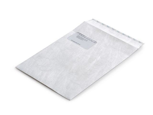 BONG Tyvek konvolutt uten vindu er rivesikker for å gi økt beskyttelse underveis. Denne rivesikre konvolutten holder pakken trygg underveis. Den er vannavstøtende for å beskytte forsendelsen mot søl og er ideell for internasjonale forsendelser. Denne resirkulerbare konvolutten er laget av Tyvek®-papir, noe som gjør den slitesterk. Den har selvklebende forsegling som hindrer at innholdet faller ut.