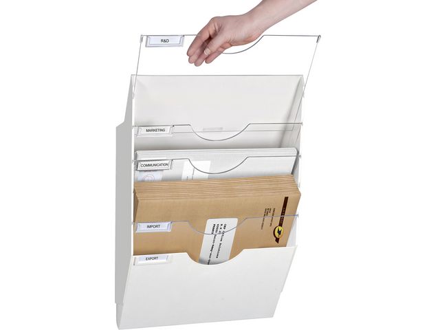 Gjør et godt førsteinntrykk med CEPs ReCeption-serie, en serie med tilbehør til arbeidsplassen spesielt utviklet for å gi ditt resepsjonsområde et innbydende og ensartet utseende. CEP ReCeption 153-vegghyllen er laget av støtsikker polystyren og er en attraktiv, men praktisk lagringsløsning på arbeidsplassen eller resepsjonsområdet. Vegghyllen er ideell for lagring eller utstilling av dokumenter som er større enn 240 x 320 mm, og er også nyttig for organisering av post. I tillegg har hver enhet 6 rom som er atskilt av flyttbare skillevegger, noe som betyr at du kan enkelt forstørre og forminske seksjonene i vegghyllen etter hvert som behovene endrer seg. Hvis du vil ha ekstra lagringsplass, er det bare å montere flere vegghyller ved siden av eller over hverandre.