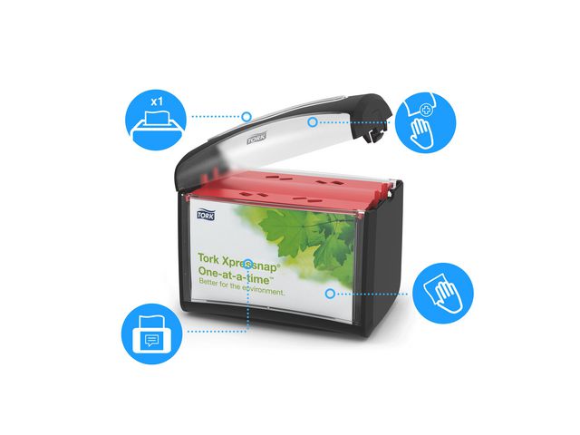 Kontroller kostnadene knyttet til serviettforbruk, og forbedre hygienenivået med Tork Xpressnap serviettdispenser. Du kan også ta med din egen logo eller reklame ved hjelp av Ad-a-Glance-funksjonen fra Tork. Denne bærbare Tork ... Läs mer