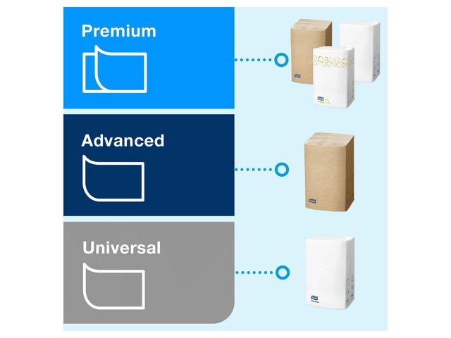 - forbruket reduseres med minst 25 % sammenlignet med tradisjonelle serviettdispensere