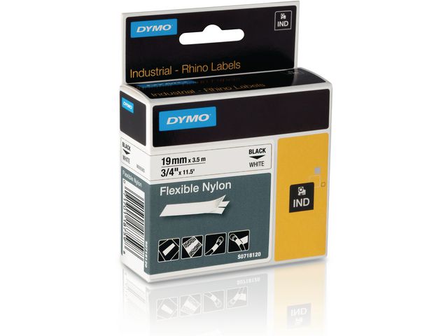 Den permanente DYMO® Rhino-polyesterkassetten på 19 mm inneholder kraftig polyesterteip i sort og hvitt. Gir robuste etiketter som varer lenge. Perfekt til bruk innendørs og utendørs for merking av beholdere, paneler, bjelker eller hyller. Rhino-etikettene viser tekst som skrives ut ved hjelp av varmeoverføringsteknologi, noe som fjerner behovet for blekk og toner. De er bestandige mot vann, UV-lys, kjemikalier og olje og har en sterk klebeevne som passer utmerket for industriell bruk. De er temperaturbestandige mellom -40 og 150 grader Celsius. Bare ta av baksiden av etiketten for enkel påføring.
