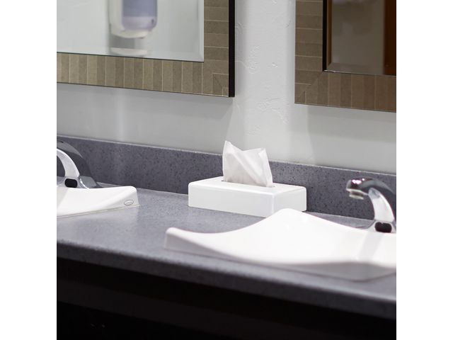 Elegant og flyttbar dispenser som sørger for at du kan gi gjester den beste komforten, hvor enn det skulle trenges. Den er fleksibel og kan monteres på vegg eller plasseres rett på benken. Med dispensering av et og et ark av gangen kan man redusere forbruket og sikre optimal hygiene.