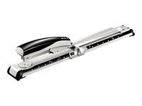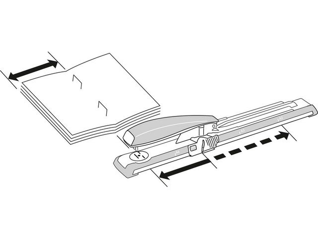Stor stiftemaskin med ekstra lang rekkevidde. Med god kapasitet, inntil 300mm rekkevidde og enkel innstilling til rett format, gjør den stiftejobben lettere og mer effektiv. Ideel for kontor og skoler. Effektiv stiftemaskin Rekkevidde: Inntil 300mm inn på arket Kapastiet: 40 ark á 80g Enkelt å stille inn Direct Impact teknologi Tollading av stift Kompatibel med stift: 24/6 og 26/6