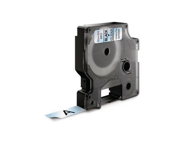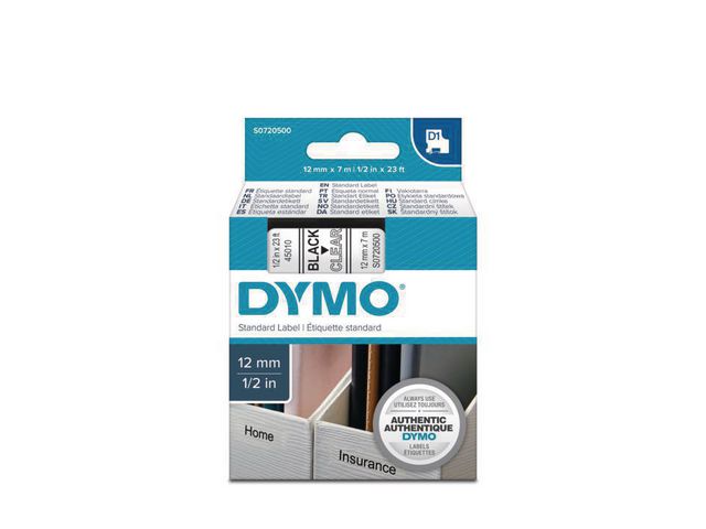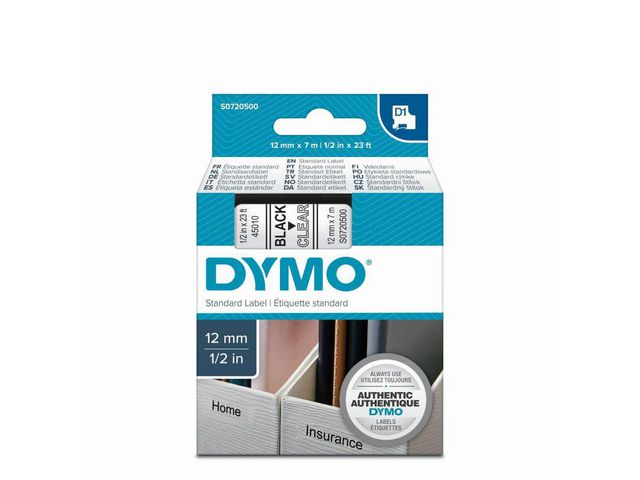 - innendørs eller utendørs, på kontoret, verkstedet, butikken eller hvor som helst. DYMO® D1-etikettkassetten på 12 mm gir stilige, tilpassede etiketter i sort på gjennomsiktig bakgrunn som er raske og enkle å påføre. Velegnet både for innendørs og utendørs bruk. D1-teipene viser tekst som skrives ut ved hjelp av varmeoverføringsteknologi, noe som fjerner behovet for blekk og toner. Alle etiketter er slitesterke og varige siden de er vannbestandige, UV-bestandige og temperaturbestandige mellom -18 og 90 grader celsius. De kleber på nesten alle jevne og rene overflater, inkludert plast, papir, metall, tre og glass. Den selvklebende teipen kan også fjernes for korttidsmerking uten å etterlate limrester.