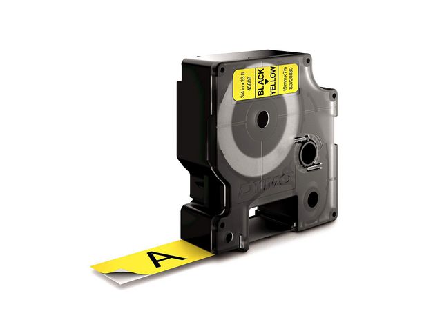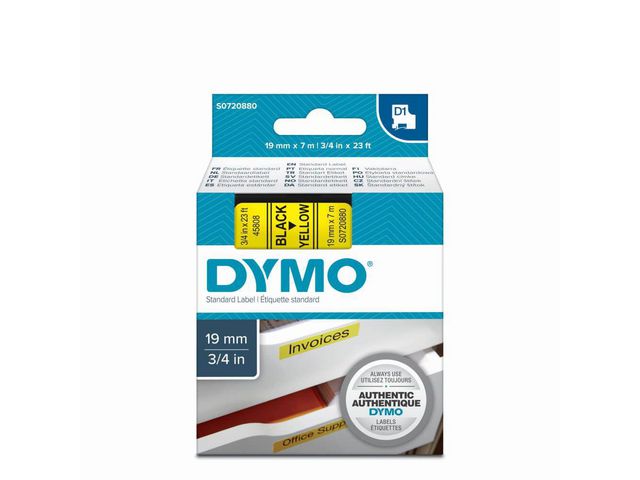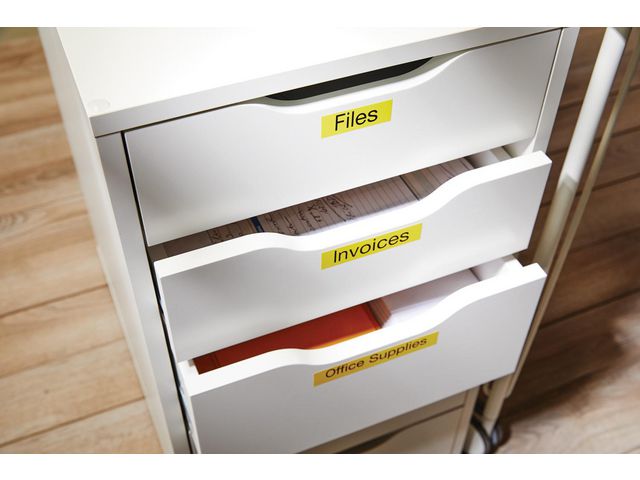 - innendørs eller utendørs, på kontoret, verkstedet, butikken eller hvor som helst. DYMO® D1-etikettkassetten på 19 mm gir stilige, tilpassede etiketter i sort på gult som er enkle og raske å påføre. Velegnet både for innendørs og utendørs bruk. D1-teipene viser tekst som skrives ut ved hjelp av varmeoverføringsteknologi, noe som fjerner behovet for blekk og toner. Alle etiketter er slitesterke og varige siden de er vannbestandige, UV-bestandige og temperaturbestandige mellom -18 og 90 grader celsius. De kleber på nesten alle jevne og rene overflater, inkludert plast, papir, metall, tre og glass. Den selvklebende teipen kan også fjernes for korttidsmerking uten å etterlate limrester.