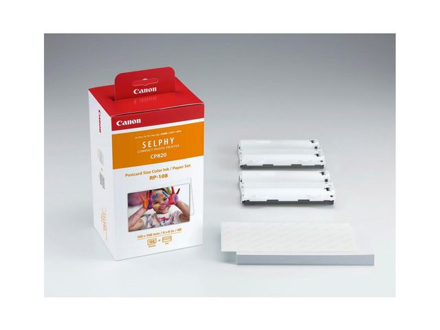Papir og blekk-kit til Canon Selphy fotoprinter. Canon RP-108 er en pakke bestående av farge og papir til Canon Selphy og CP skrivere.