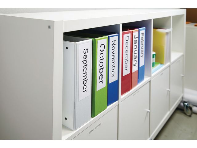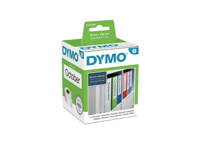 Dymo LabelWriter¿ store LAF-etiketter har et ikke-permanent lim på baksiden som enkelt kan fjernes fra flaten de er klebet på. DYMO® LabelWriterT store LAF-etiketter gir stilige, brukerdefinerte etiketter i stor størrelse på 190 x 59 mm, som passer til lange adresser og administrering og organisering av mapper hjemme eller på kontoret. LabelWriterT-etikker gir deg utskrift av høy kvalitet med maksimal ytelse. Hver etikett tas lett av uten å etterlate limrester og kan skrives ut én om gangen uten papirstopp, noe som gir mindre avfall. De bruker termisk overføringsteknologi til å skrive ut tekst, noe som fjerner behovet for blekk og toner. Leveres i én rull med 110 etiketter, slik at du får en kostnadseffektiv løsning på merkelappbehovet ditt.