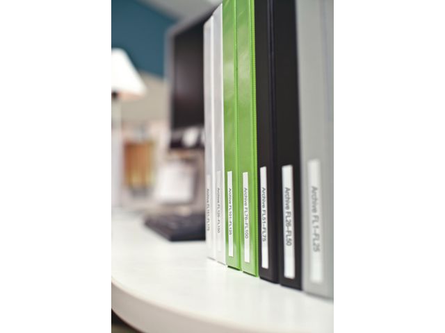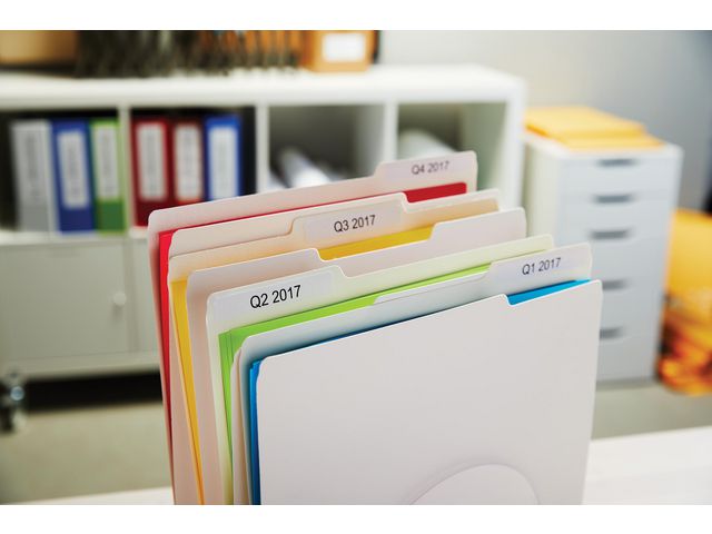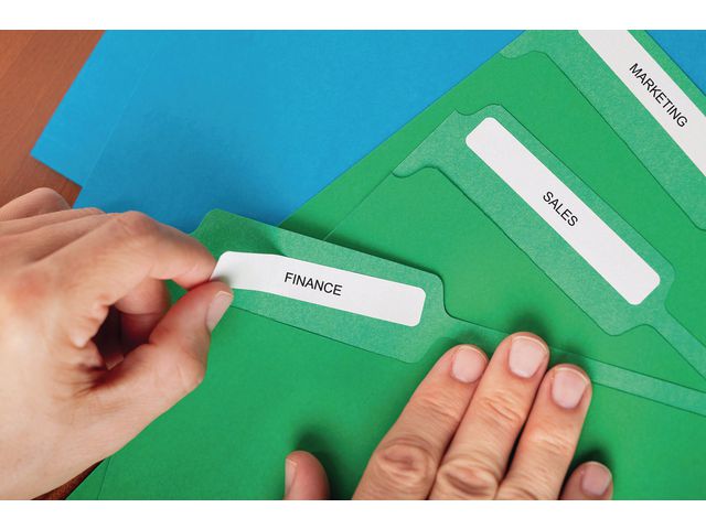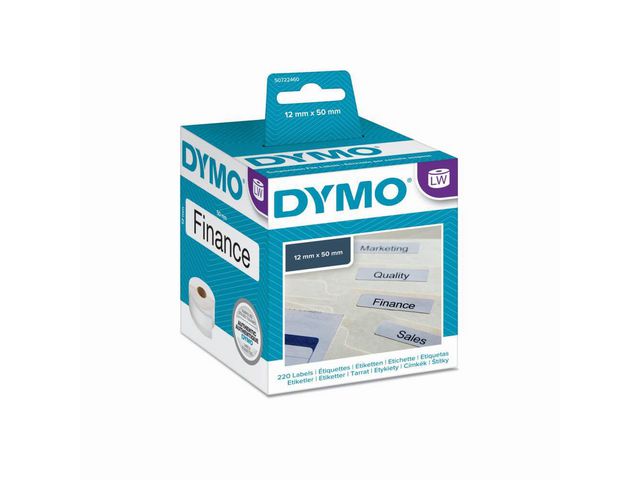 Dymo LabelWriter¿ hengemappeetiketter har et ikke-permanent lim på baksiden som enkelt kan fjernes fra flaten de er klebet på. DYMO® LabelWriterT hengemappeetiketter gir stilige, brukerdefinerte etiketter i stor størrelse på 50 x 12 mm, som passer til lange adresser og administrering og organisering av mapper hjemme eller på kontoret. LabelWriterT-etiketter gir deg utskrift av høy kvalitet med maksimal ytelse. Hver etikett tas lett av uten å etterlate limrester og kan skrives ut én om gangen uten papirstopp, noe som gir mindre avfall. De bruker termisk overføringsteknologi til å skrive ut tekst, noe som fjerner behovet for blekk og toner. Leveres i én rull med 220 etiketter, slik at du får en kostnadseffektiv løsning på etikettbehovet ditt.