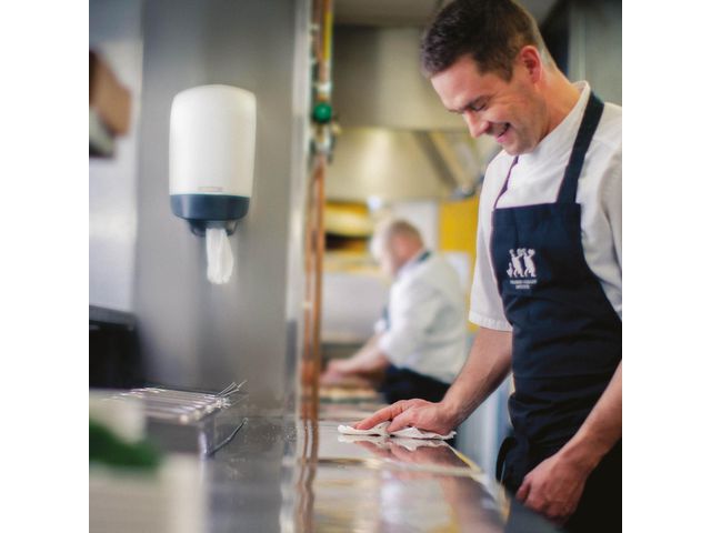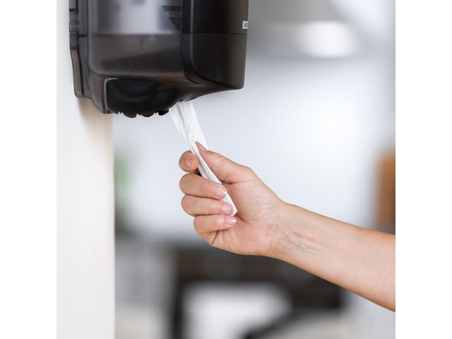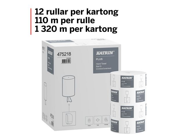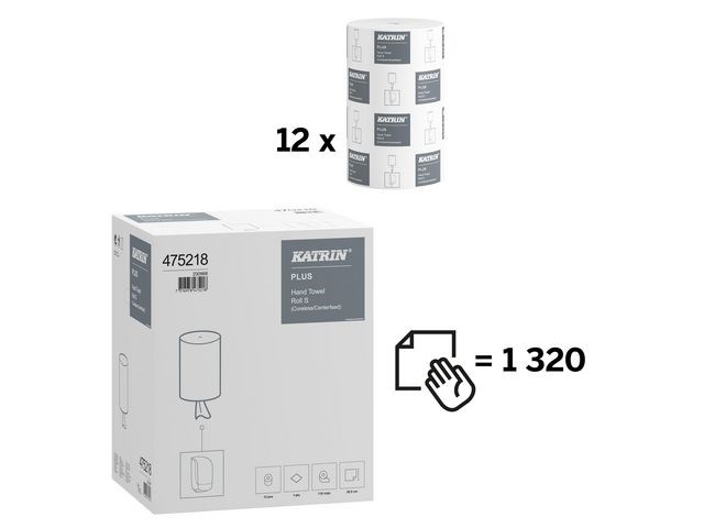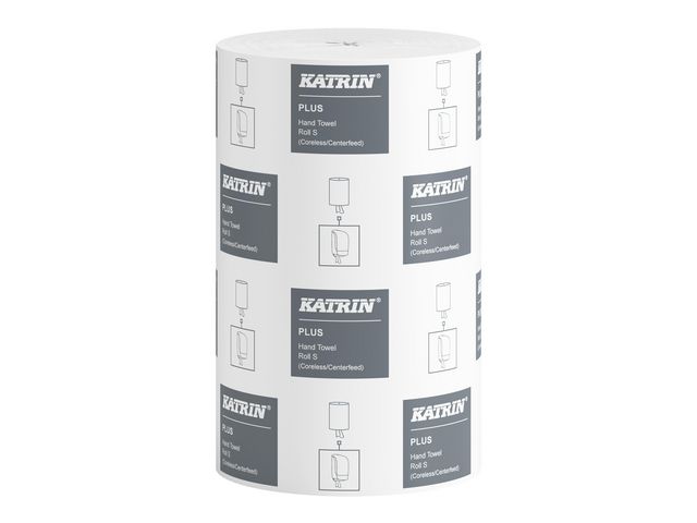 Myk og sterk tørkerull for effektiv tørking av både hender og overflater. Høy absorpsjon og styrke. Katrin Plus Tørkerull S 1 er en myk og sterk tørkerull av høyeste kvalitet, designet for effektiv tørking av både overflater og hender. Med sin høye absorberingsevne er papiret raskt og effektivt å tørke opp søl og væsker. Tørkerull er mykt og behagelig, den varer lenge takket være lavt forbruk. Papiret kan komme i direkte kontakt med næringsmidler i kortere tid for avtørking. Sammen med Katrins Centerfeed Dispenser gir løsningen en enkel avrivning, en hånd er nok og brukeren tar ønsket mengde papir. Tørkerullen er hylseløs, noe som forenkler fylling av dispenseren. Passer til Katrins Centerfeed Dispenser.