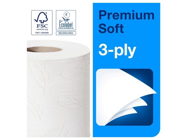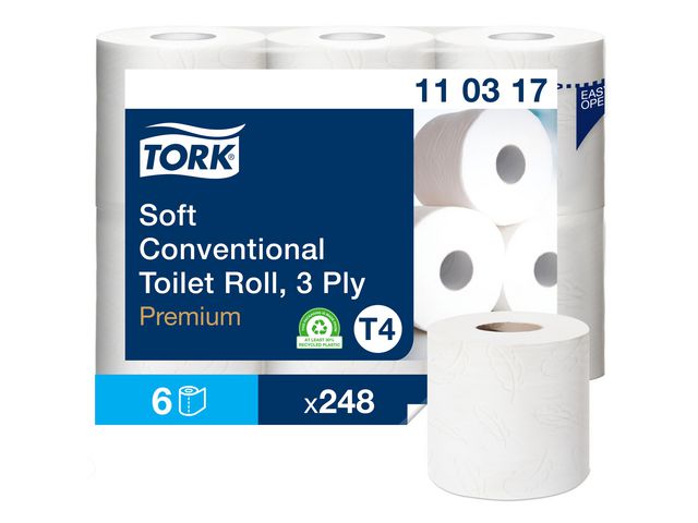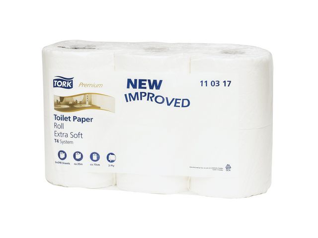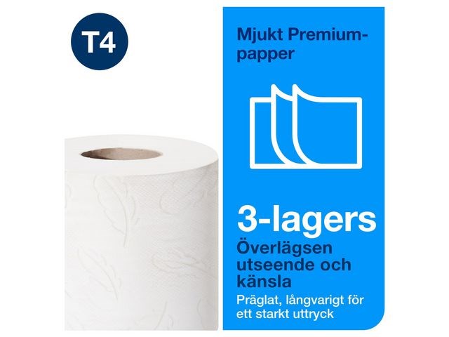 Tork Advanced Extra Soft T4 Standard toalettpapirrull er myk og gir skånsom pleie og maksimal komfort. Tork Advanced Extra Soft T4. føles mykt og er laget for å gi skånsom pleie og enestående komfort. Det er laget med 3-lags ark for enestående absorberingsevne og overlegen komfort.