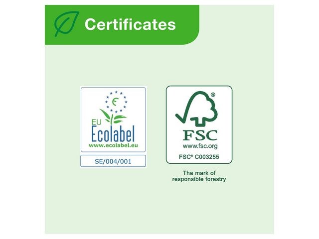- Materiale: Resirkulert papir, ubehandlede tremassefibre