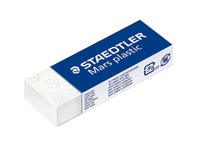 STAEDTLER Mars® Plastic 526 50 er et pålitelig viskelær av høy kvalitet som kan brukes på alle typer papir. Dette viskelæret visker bort feil på en ren måte uten å etterlate spor. Den er utviklet for å smuldre minimalt og etterlate mindre rester. Papphylsen og den beskyttende cellofaninnpakningen gjør at viskelæret holder på formen og varer lenger enn normalt. Viskelærets store rektangulære form gjør at det ligger godt i hånden og gjør det så behagelig å viske bort streker som mulig. Videre tåler det høy alder og kan lagres og brukes i svært lang tid.